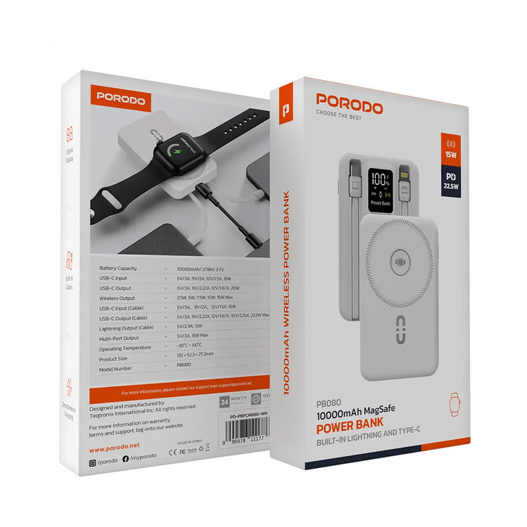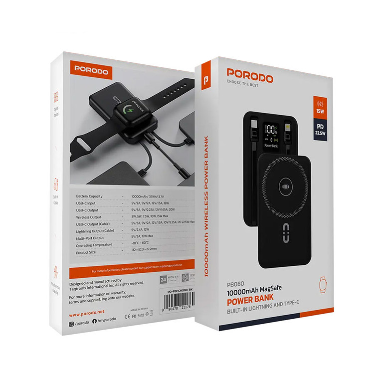 Porodo 10000mAh Magsafe Power Bank Built-In Lightning And Type-C PD-PBFCH080