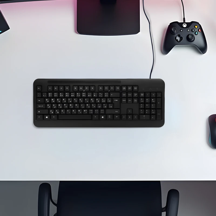 کیبورد شوش مدل SH-63 از طریق رابط USB به کامپیوتر یا لپتاپ متصل میشود. اتصال سیمی، پایداری و اطمینان از ارتباط بدون قطعی را در طولانیمدت فراهم میکند. قابلیت Plug & Play به کاربران اجازه میدهد تا بدون نیاز به نصب نرمافزار یا درایور خاص، به سرعت و به آسانی از کیبورد استفاده کنند. این ویژگی، راهاندازی و استفاده از کیبورد را برای تمامی کاربران، حتی افراد مبتدی، بسیار ساده میسازد. سازگاری کامل با تمامی سیستمعاملهای رایج، از دیگر نقاط قوت این محصول به شمار میرود. طول کابل ۱۵۰ سانتیمتری کیبورد SH-63، فضای مانور مناسبی را برای قرار دادن کیبورد روی میز کار و اتصال آن به سیستم فراهم میکند. دفترچه راهنمای موجود در جعبه محصول، اطلاعات و راهنماییهای لازم برای استفاده از کیبورد را در اختیار کاربر قرار میدهد.